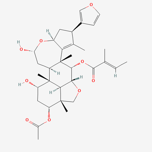 IUPAC Name: [(1R,2R,4R,6S,8R,11R,12S,13R,16R,17R,19S,20R)-17-acetyloxy-8-(furan-3-yl)-4,19-dihydroxy-1,9,11,16-tetramethyl-5,14-dioxapentacyclo[11.6.1.02,11.06,10.016,20]icos-9-en-12-yl] (E)-2-methylbut-2-enoate