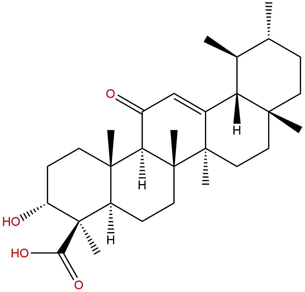 IUPAC Name: (3R,4R,4aR,6aR,6bS,8aR,11R,12S,12aR,14aR,14bS)-3-hydroxy-4,6a,6b,8a,11,12,14b-heptamethyl-14-oxo-1,2,3,4a,5,6,7,8,9,10,11,12,12a,14a-tetradecahydropicene-4-carboxylic acid