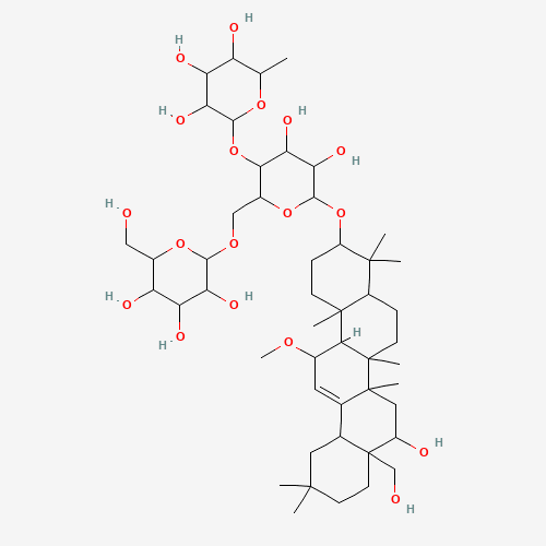 IUPAC Name: 2-[4,5-dihydroxy-6-[[8-hydroxy-8a-(hydroxymethyl)-14-methoxy-4,4,6a,6b,11,11,14b-heptamethyl-1,2,3,4a,5,6,7,8,9,10,12,12a,14,14a-tetradecahydropicen-3-yl]oxy]-2-[[3,4,5-trihydroxy-6-(hydroxymethyl)oxan-2-yl]oxymethyl]oxan-3-yl]oxy-6-methyloxane-3,4,5-triol