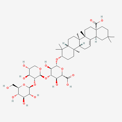 IUPAC Name: (2S,3S,4S,5R,6R)-6-[[(3S,4aR,6aR,6bS,8aS,12aS,14aR,14bR)-8a-carboxy-4,4,6a,6b,11,11,14b-heptamethyl-1,2,3,4a,5,6,7,8,9,10,12,12a,14,14a-tetradecahydropicen-3-yl]oxy]-4-[(2S,3R,4S,5R)-4,5-dihydroxy-3-[(2S,3R,4S,5S,6R)-3,4,5-trihydroxy-6-(hydroxymethyl)oxan-2-yl]oxyoxan-2-yl]oxy-3,5-dihydroxyoxane-2-carboxylic acid