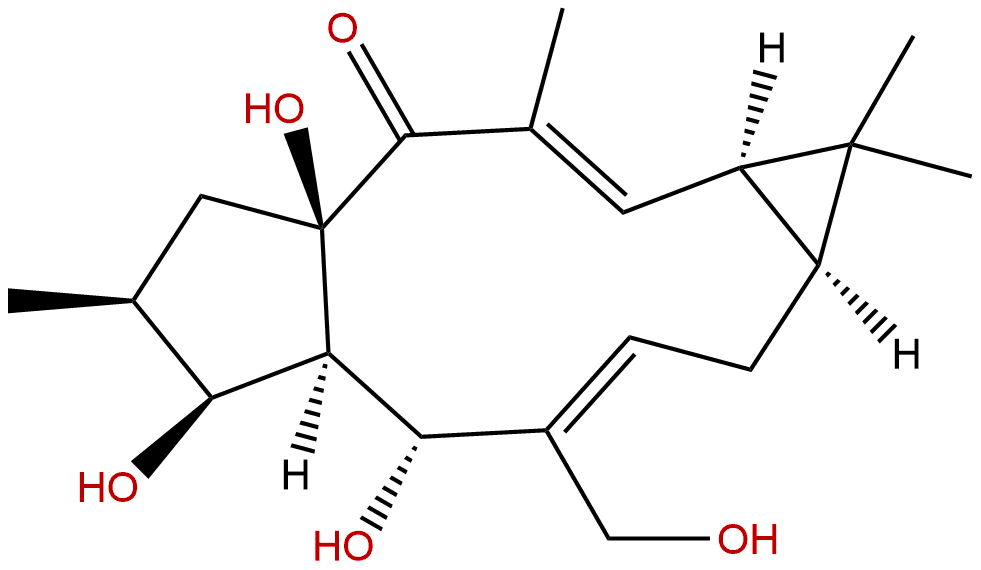 IUPAC Name: (3Z,9Z)-1,11,13-trihydroxy-10-(hydroxymethyl)-3,6,6,14-tetramethyltricyclo[10.3.0.05,7]pentadeca-3,9-dien-2-one