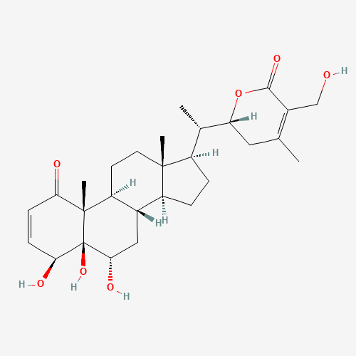 InChI: InChI=1S/C28H40O7/c1-14-11-21(35-25(33)17(14)13-29)15(2)18-5-6-19-16-12-24(32)28(34)23(31)8-7-22(30)27(28,4)20(16)9-10-26(18,19)3/h7-8,15-16,18-21,23-24,29,31-32,34H,5-6,9-13H2,1-4H3/t15-,16-,18+,19-,20-,21+,23-,24-,26+,27-,28+/m0/s1