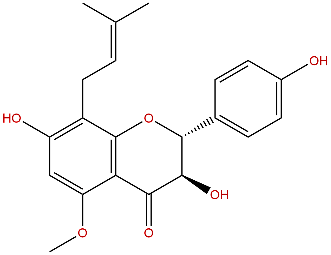 IUPAC Name: (2R,3R)-3,7-dihydroxy-2-(4-hydroxyphenyl)-5-methoxy-8-(3-methylbut-2-enyl)-2,3-dihydrochromen-4-one
