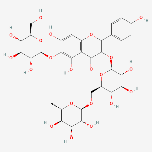 IUPAC Name: 5,7-dihydroxy-2-(4-hydroxyphenyl)-6-[(2S,3R,4S,5S,6R)-3,4,5-trihydroxy-6-(hydroxymethyl)oxan-2-yl]oxy-3-[(2S,3R,4S,5S,6R)-3,4,5-trihydroxy-6-[[(2R,3R,4R,5R,6S)-3,4,5-trihydroxy-6-methyloxan-2-yl]oxymethyl]oxan-2-yl]oxychromen-4-one