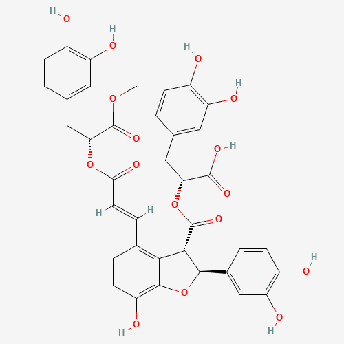 IUPAC Name: (2R)-3-(3,4-dihydroxyphenyl)-2-[(2S,3S)-2-(3,4-dihydroxyphenyl)-4-[(E)-3-[(2R)-3-(3,4-dihydroxyphenyl)-1-methoxy-1-oxopropan-2-yl]oxy-3-oxoprop-1-enyl]-7-hydroxy-2,3-dihydro-1-benzofuran-3-carbonyl]oxypropanoic acid