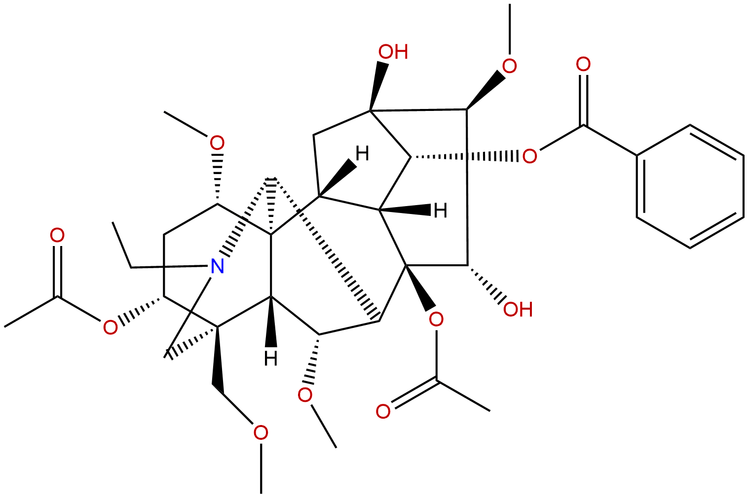 InChI: InChI=1S/C36H49NO12/c1-8-37-16-33(17-43-4)22(47-18(2)38)14-23(44-5)35-21-15-34(42)30(48-32(41)20-12-10-9-11-13-20)24(21)36(49-19(3)39,29(40)31(34)46-7)25(28(35)37)26(45-6)27(33)35/h9-13,21-31,40,42H,8,14-17H2,1-7H3/t21-,22-,23+,24-,25+,26+,27-,28?,29+,30-,31+,33+,34-,35+,36-/m1/s1