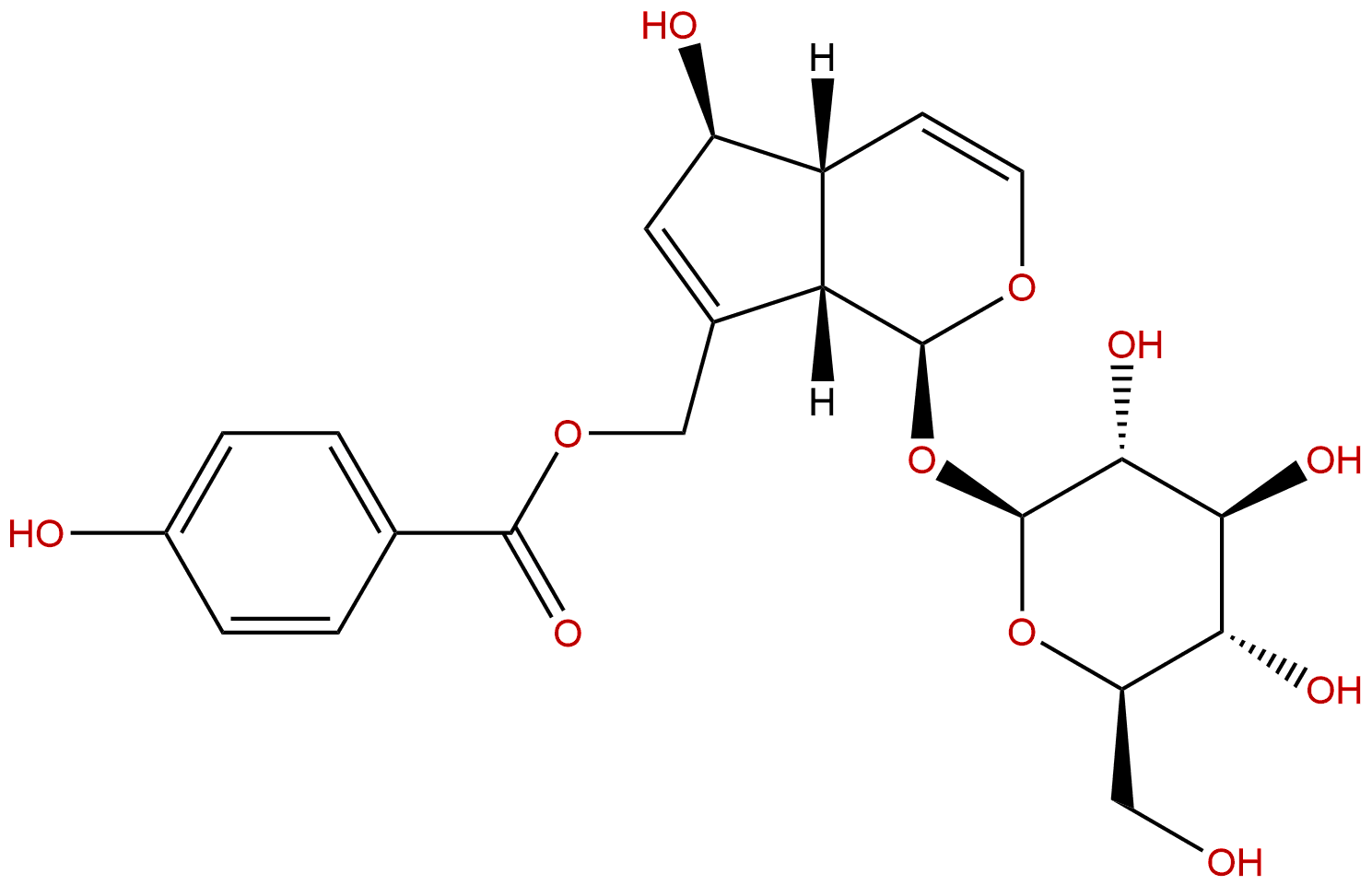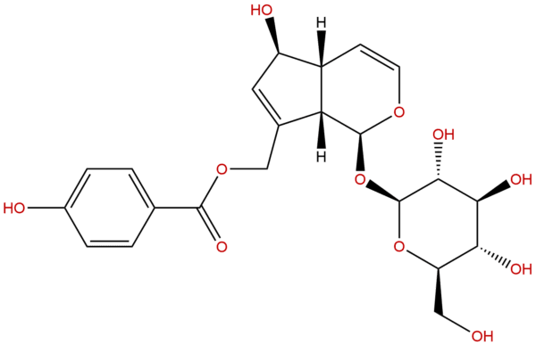 IUPAC Name: [(1S,4aR,5S,7aS)-5-hydroxy-1-[(2S,3R,4S,5S,6R)-3,4,5-trihydroxy-6-(hydroxymethyl)oxan-2-yl]oxy-1,4a,5,7a-tetrahydrocyclopenta[c]pyran-7-yl]methyl 4-hydroxybenzoate