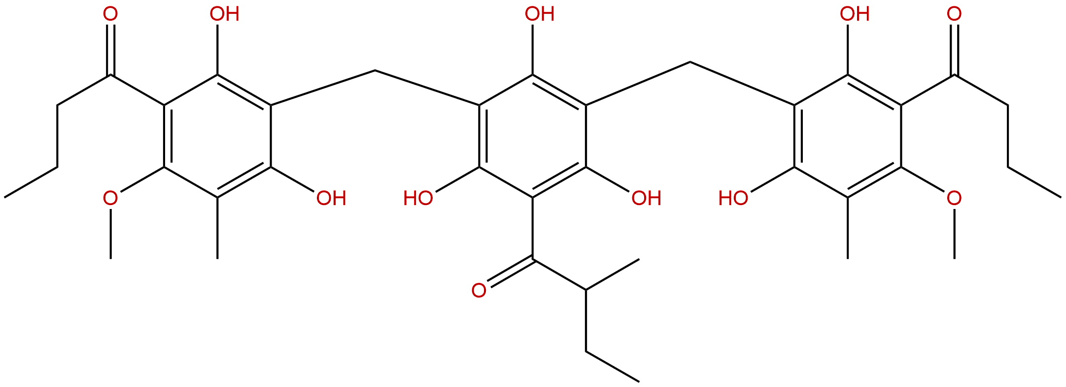 IUPAC Name: (2S)-1-[3,5-bis[(3-butanoyl-2,6-dihydroxy-4-methoxy-5-methylphenyl)methyl]-2,4,6-trihydroxyphenyl]-2-methylbutan-1-one