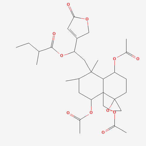 IUPAC Name: [2-[4,8-diacetyloxy-4a-(acetyloxymethyl)-1,2-dimethylspiro[3,4,6,7,8,8a-hexahydro-2H-naphthalene-5,2′-oxirane]-1-yl]-1-(5-oxo-2H-furan-3-yl)ethyl] 2-methylbutanoate