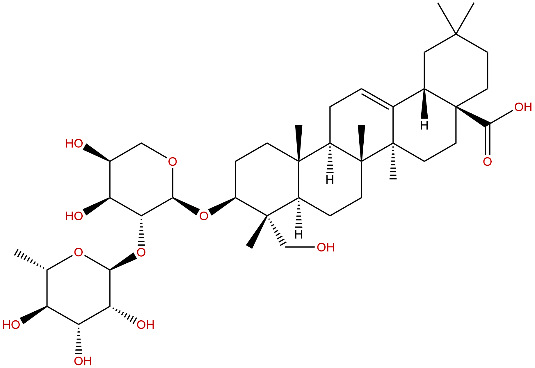 InChI: InChI=1S/C41H66O12/c1-21-28(44)30(46)31(47)33(51-21)53-32-29(45)24(43)19-50-34(32)52-27-11-12-37(4)25(38(27,5)20-42)10-13-40(7)26(37)9-8-22-23-18-36(2,3)14-16-41(23,35(48)49)17-15-39(22,40)6/h8,21,23-34,42-47H,9-20H2,1-7H3,(H,48,49)/t21-,23-,24-,25+,26+,27-,28-,29-,30+,31+,32+,33-,34-,37-,38-,39+,40+,41-/m0/s1