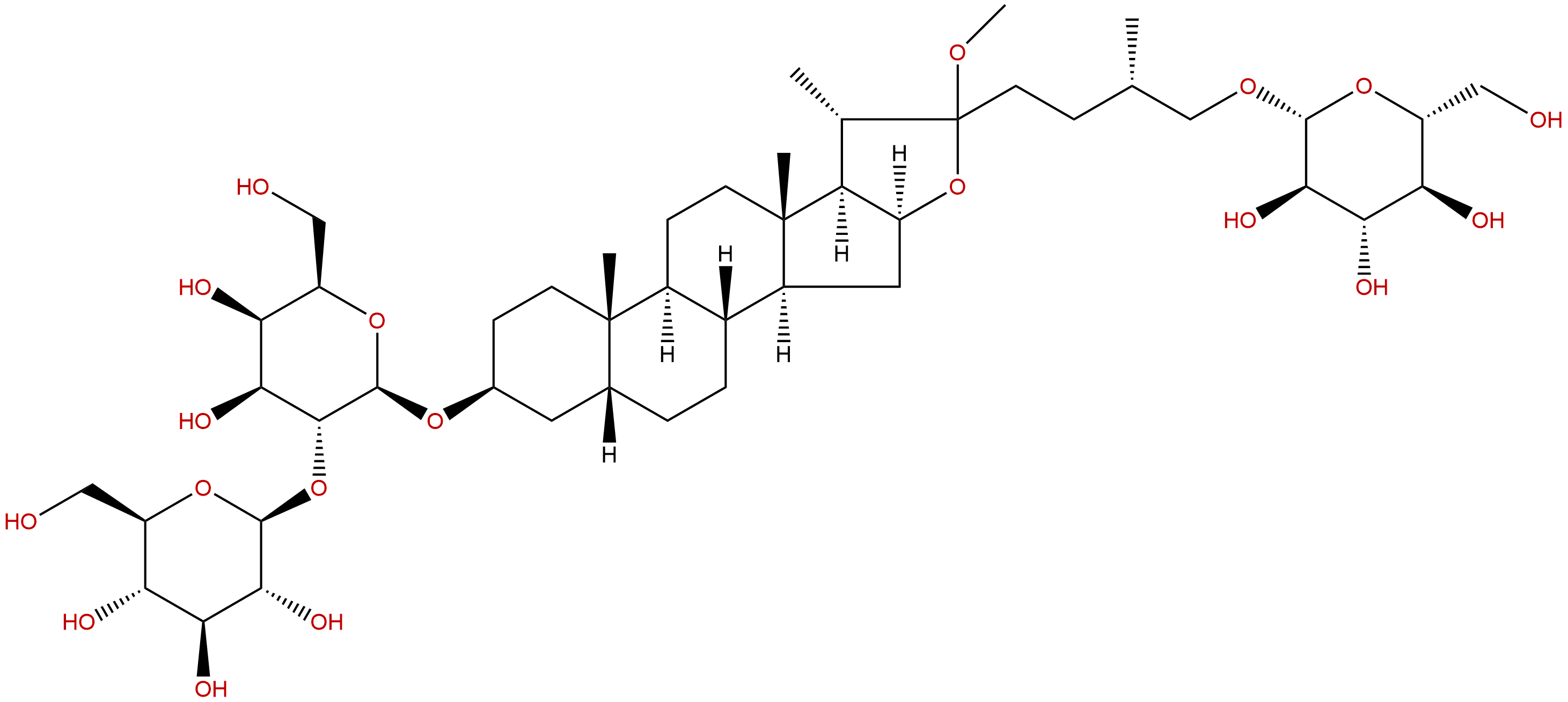 InChI: InChI=1S/C46H78O19/c1-20(19-59-41-38(56)35(53)32(50)28(16-47)61-41)8-13-46(58-5)21(2)31-27(65-46)15-26-24-7-6-22-14-23(9-11-44(22,3)25(24)10-12-45(26,31)4)60-43-40(37(55)34(52)30(18-49)63-43)64-42-39(57)36(54)33(51)29(17-48)62-42/h20-43,47-57H,6-19H2,1-5H3/t20-,21-,22+,23-,24+,25-,26-,27-,28+,29+,30+,31-,32+,33+,34-,35-,36-,37-,38+,39+,40+,41+,42-,43+,44-,45-,46?/m0/s1