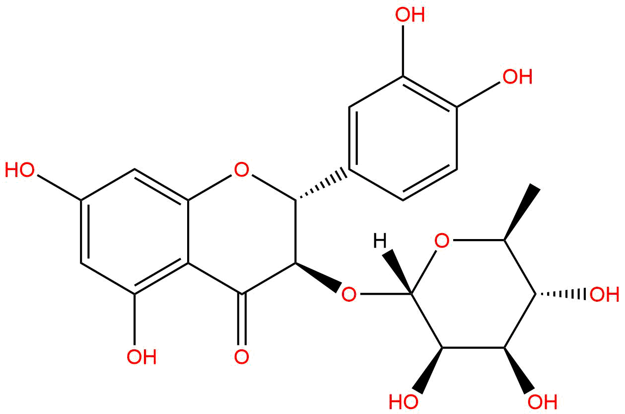 IUPAC Name: (2R,3R)-2-(3,4-dihydroxyphenyl)-5,7-dihydroxy-3-[(2S,3R,4R,5R,6S)-3,4,5-trihydroxy-6-methyloxan-2-yl]oxy-2,3-dihydrochromen-4-one