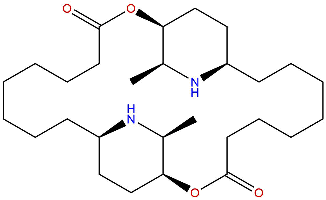 InChI: InChI=1S/C28H50N2O4/c1-21-25-19-17-23(29-21)13-9-5-3-8-12-16-28(32)34-26-20-18-24(30-22(26)2)14-10-6-4-7-11-15-27(31)33-25/h21-26,29-30H,3-20H2,1-2H3/t21-,22-,23+,24+,25-,26-/m0/s1
