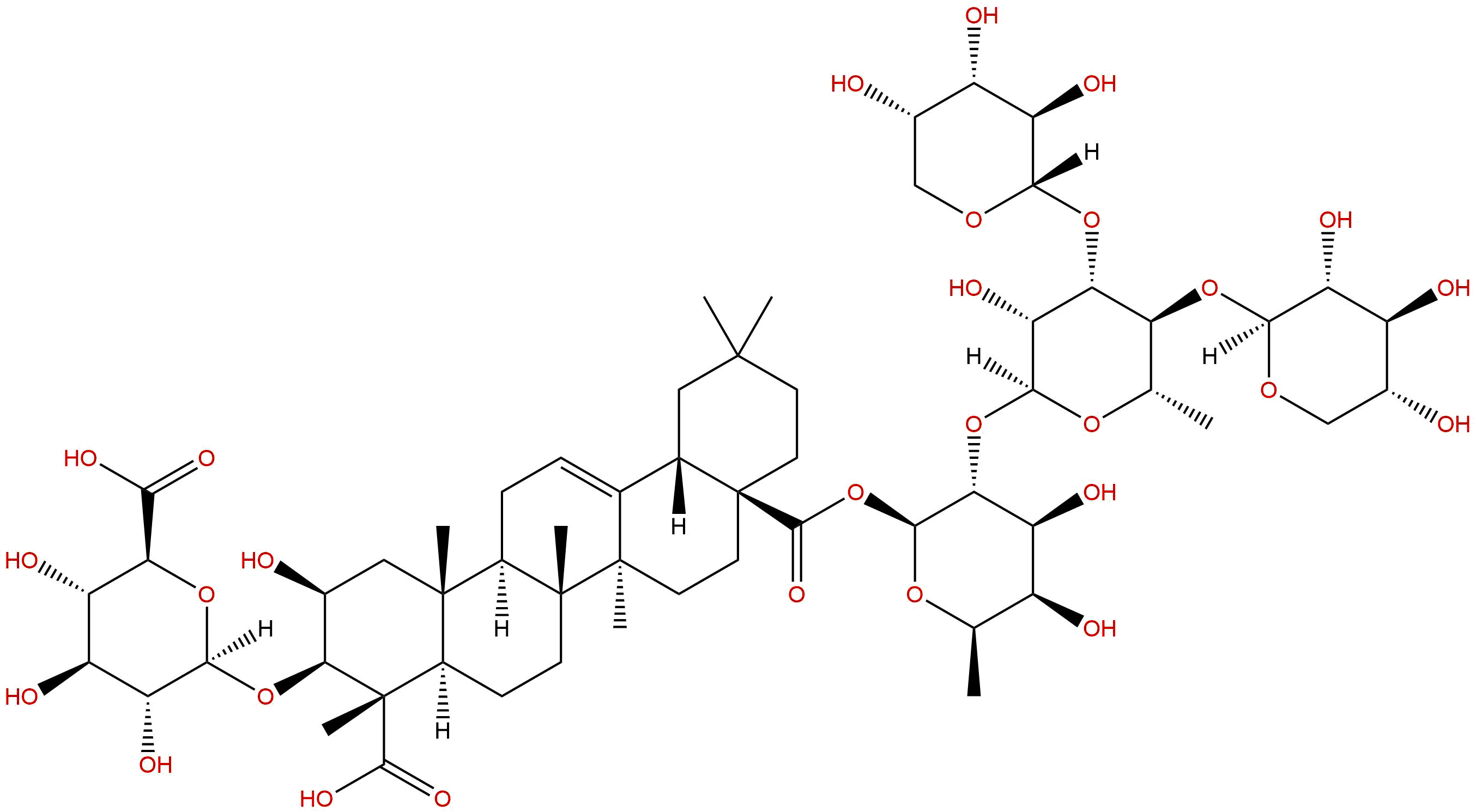 InChI: InChI=1S/C58H90O28/c1-21-30(62)34(66)43(84-49-39(71)41(82-47-37(69)32(64)27(61)20-78-47)40(22(2)80-49)81-46-36(68)31(63)26(60)19-77-46)50(79-21)86-52(76)58-15-13-53(3,4)17-24(58)23-9-10-28-54(5)18-25(59)44(85-48-38(70)33(65)35(67)42(83-48)45(72)73)57(8,51(74)75)29(54)11-12-56(28,7)55(23,6)14-16-58/h9,21-22,24-44,46-50,59-71H,10-20H2,1-8H3,(H,72,73)(H,74,75)/t21-,22+,24+,25+,26-,27+,28-,29-,30+,31+,32+,33+,34+,35+,36-,37-,38-,39-,40+,41+,42+,43-,44+,46+,47+,48+,49+,50+,54-,55-,56-,57+,58+/m1/s1