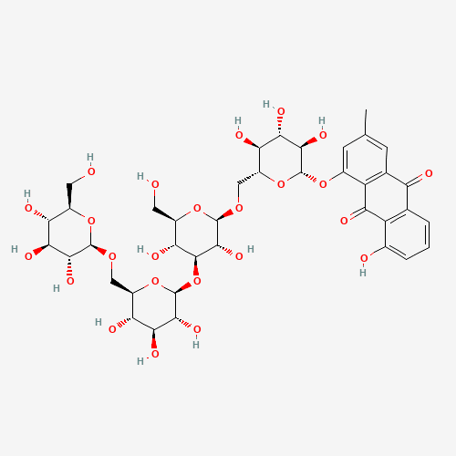 IUPAC Name: 1-[(2S,3R,4S,5S,6R)-6-[[(2R,3R,4S,5R,6R)-3,5-dihydroxy-6-(hydroxymethyl)-4-[(2S,3R,4S,5S,6R)-3,4,5-trihydroxy-6-[[(2R,3R,4S,5S,6R)-3,4,5-trihydroxy-6-(hydroxymethyl)oxan-2-yl]oxymethyl]oxan-2-yl]oxyoxan-2-yl]oxymethyl]-3,4,5-trihydroxyoxan-2-yl]oxy-8-hydroxy-3-methylanthracene-9,10-dione