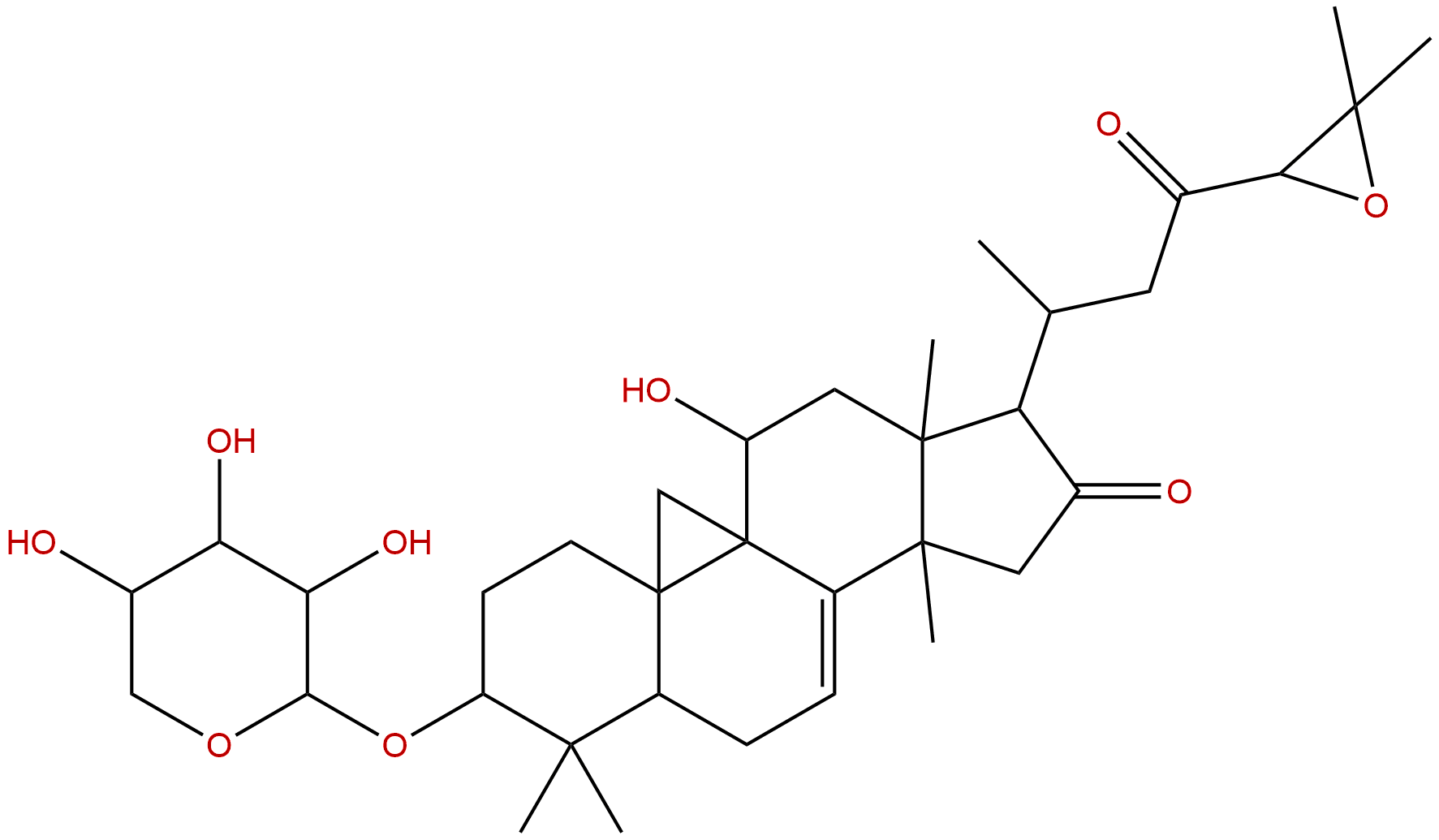 IUPAC Name: (1S,3R,6S,8R,12R,15R,16R,18S)-15-[(2R)-4-[(2R)-3,3-dimethyloxiran-2-yl]-4-oxobutan-2-yl]-18-hydroxy-7,7,12,16-tetramethyl-6-[(2S,3R,4S,5R)-3,4,5-trihydroxyoxan-2-yl]oxypentacyclo[9.7.0.01,3.03,8.012,16]octadec-10-en-14-one