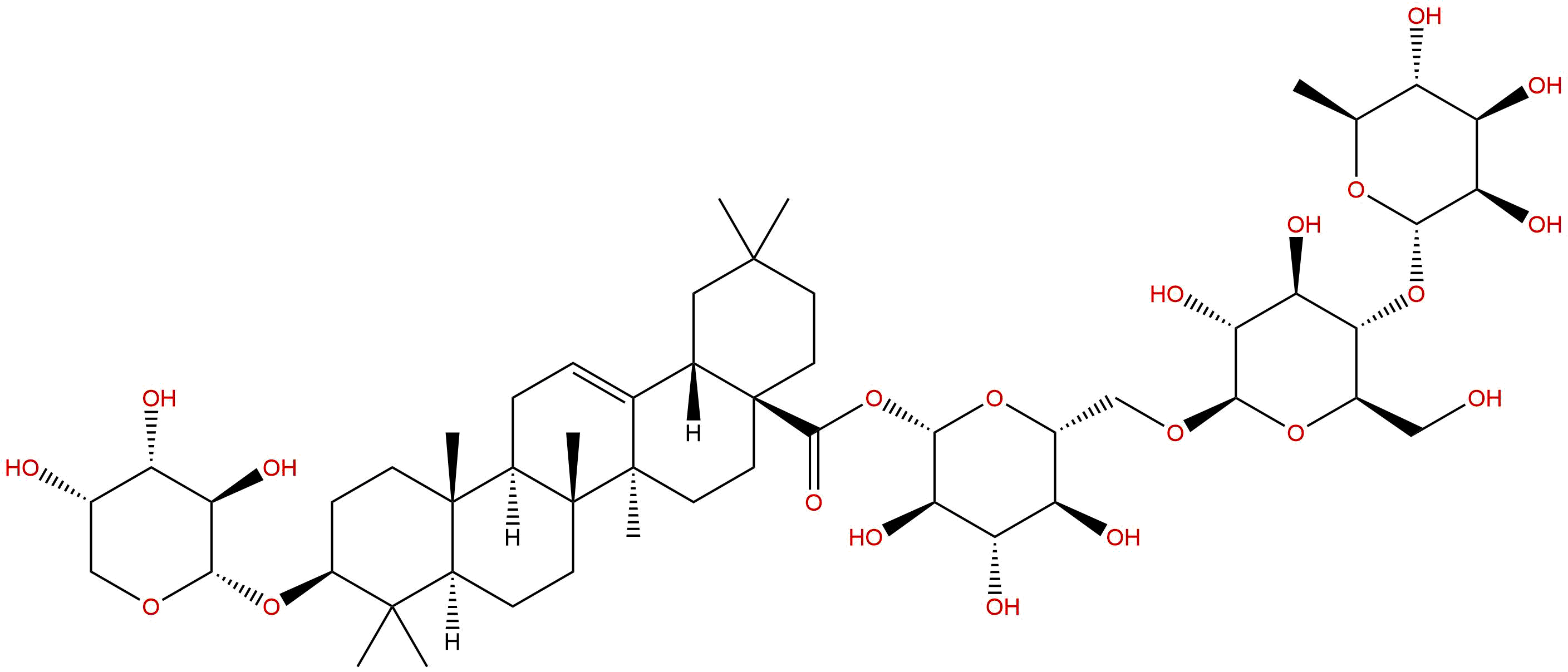 InChI: InChI=1S/C53H86O21/c1-23-32(56)35(59)39(63)45(69-23)73-42-27(20-54)70-43(41(65)37(42)61)68-22-28-34(58)36(60)40(64)46(71-28)74-47(66)53-17-15-48(2,3)19-25(53)24-9-10-30-50(6)13-12-31(72-44-38(62)33(57)26(55)21-67-44)49(4,5)29(50)11-14-52(30,8)51(24,7)16-18-53/h9,23,25-46,54-65H,10-22H2,1-8H3/t23-,25-,26-,27+,28+,29-,30+,31-,32-,33-,34+,35+,36-,37+,38+,39+,40+,41+,42+,43+,44-,45-,46-,50-,51+,52+,53-/m0/s1