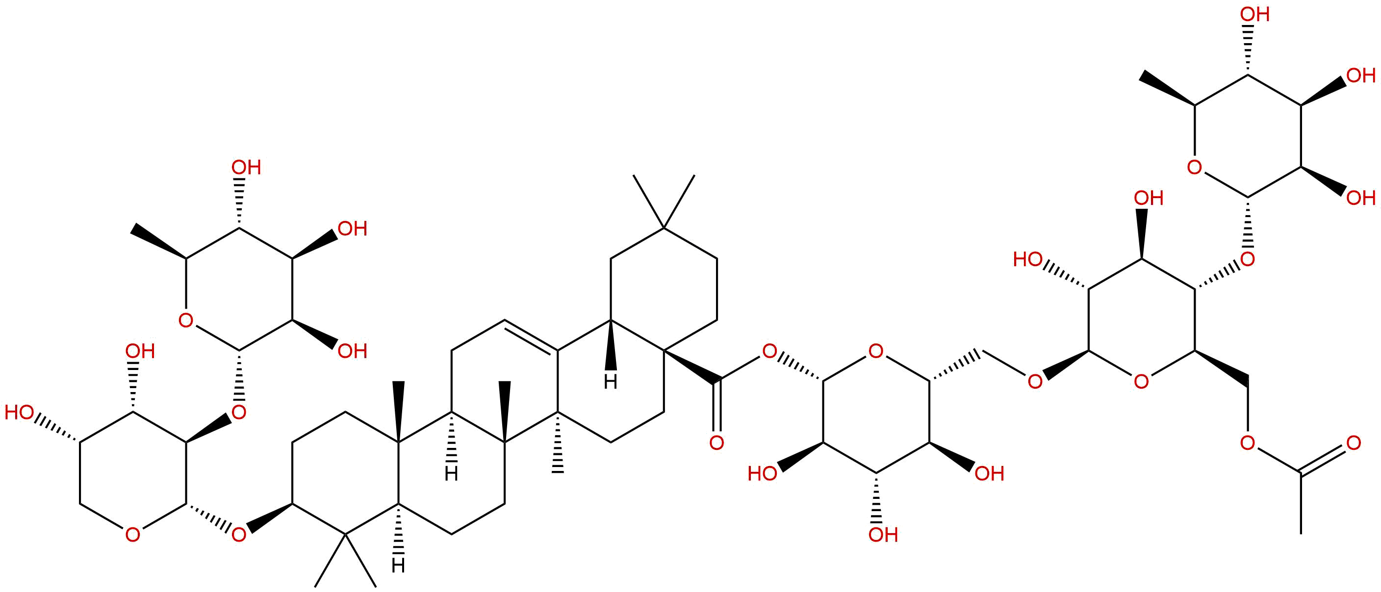 IUPAC Name: [(2S,3R,4S,5S,6R)-6-[[(2R,3R,4R,5S,6R)-6-(acetyloxymethyl)-3,4-dihydroxy-5-[(2S,3R,4R,5R,6S)-3,4,5-trihydroxy-6-methyloxan-2-yl]oxyoxan-2-yl]oxymethyl]-3,4,5-trihydroxyoxan-2-yl] (4aS,6aR,6aS,6bR,8aR,10S,12aR,14bS)-10-[(2S,3R,4S,5S)-4,5-dihydroxy-3-[(2S,3R,4R,5R,6S)-3,4,5-trihydroxy-6-methyloxan-2-yl]oxyoxan-2-yl]oxy-2,2,6a,6b,9,9,12a-heptamethyl-1,3,4,5,6,6a,7,8,8a,10,11,12,13,14b-tetradecahydropicene-4a-carboxylate