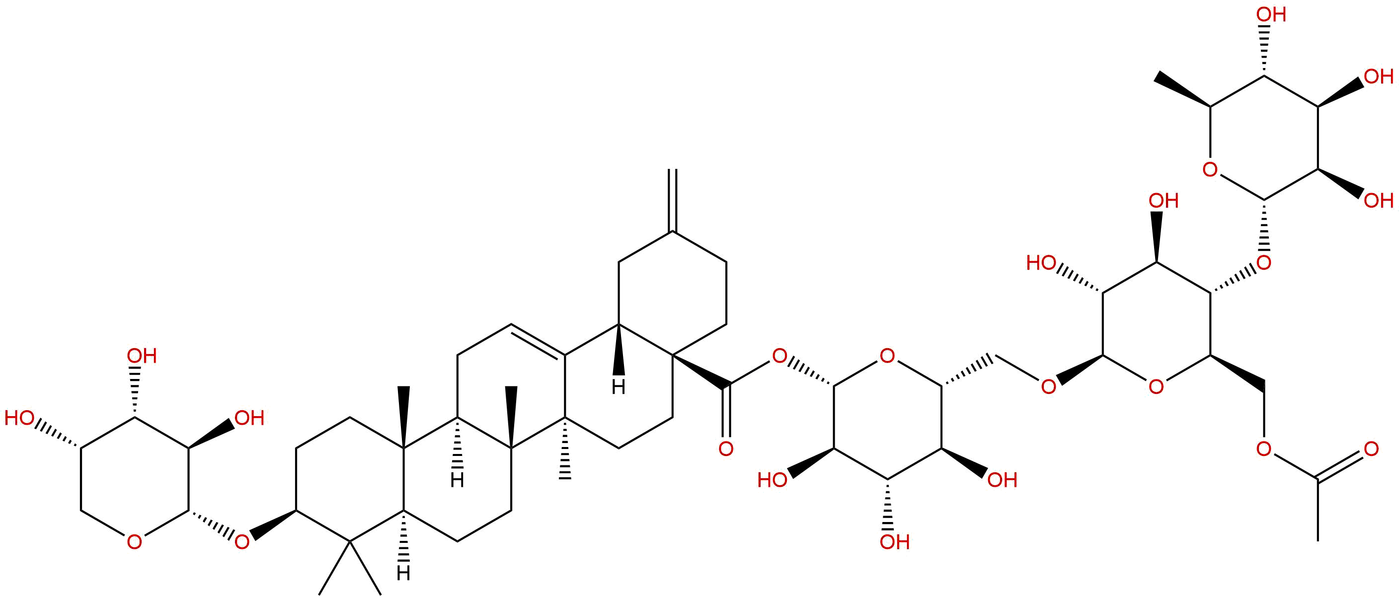 IUPAC Name: [(2S,3R,4S,5S,6R)-6-[[(2R,3R,4R,5S,6R)-6-(acetyloxymethyl)-3,4-dihydroxy-5-[(2S,3R,4R,5R,6S)-3,4,5-trihydroxy-6-methyloxan-2-yl]oxyoxan-2-yl]oxymethyl]-3,4,5-trihydroxyoxan-2-yl] (4aS,6aS,6bR,10S,12aR,14bS)-6a,6b,9,9,12a-pentamethyl-2-methylidene-10-[(2S,3R,4S,5S)-3,4,5-trihydroxyoxan-2-yl]oxy-1,3,4,5,6,6a,7,8,8a,10,11,12,13,14b-tetradecahydropicene-4a-carboxylate
