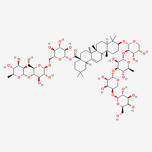SMILES: C[C@H]1[C@@H]([C@H]([C@H]([C@@H](O1)O[C@@H]2[C@H](O[C@H]([C@@H]([C@H]2O)O)OC[C@@H]3[C@H]([C@@H]([C@H]([C@@H](O3)OC(=O)[C@@]45CC[C@@]6(C(=CC[C@H]7[C@]6(CC[C@@H]8[C@@]7(CC[C@@H](C8(C)C)O[C@H]9[C@@H]([C@H]([C@H](CO9)O)O)O[C@H]1[C@@H]([C@@H]([C@H]([C@@H](O1)C)O)O[C@H]1[C@@H]([C@@H]([C@@H](CO1)O[C@H]1[C@@H]([C@H]([C@@H]([C@H](O1)CO)O)O)O)O)O)O)C)C)[C@@H]4CC(CC5)(C)C)C)O)O)O)CO)O)O)O