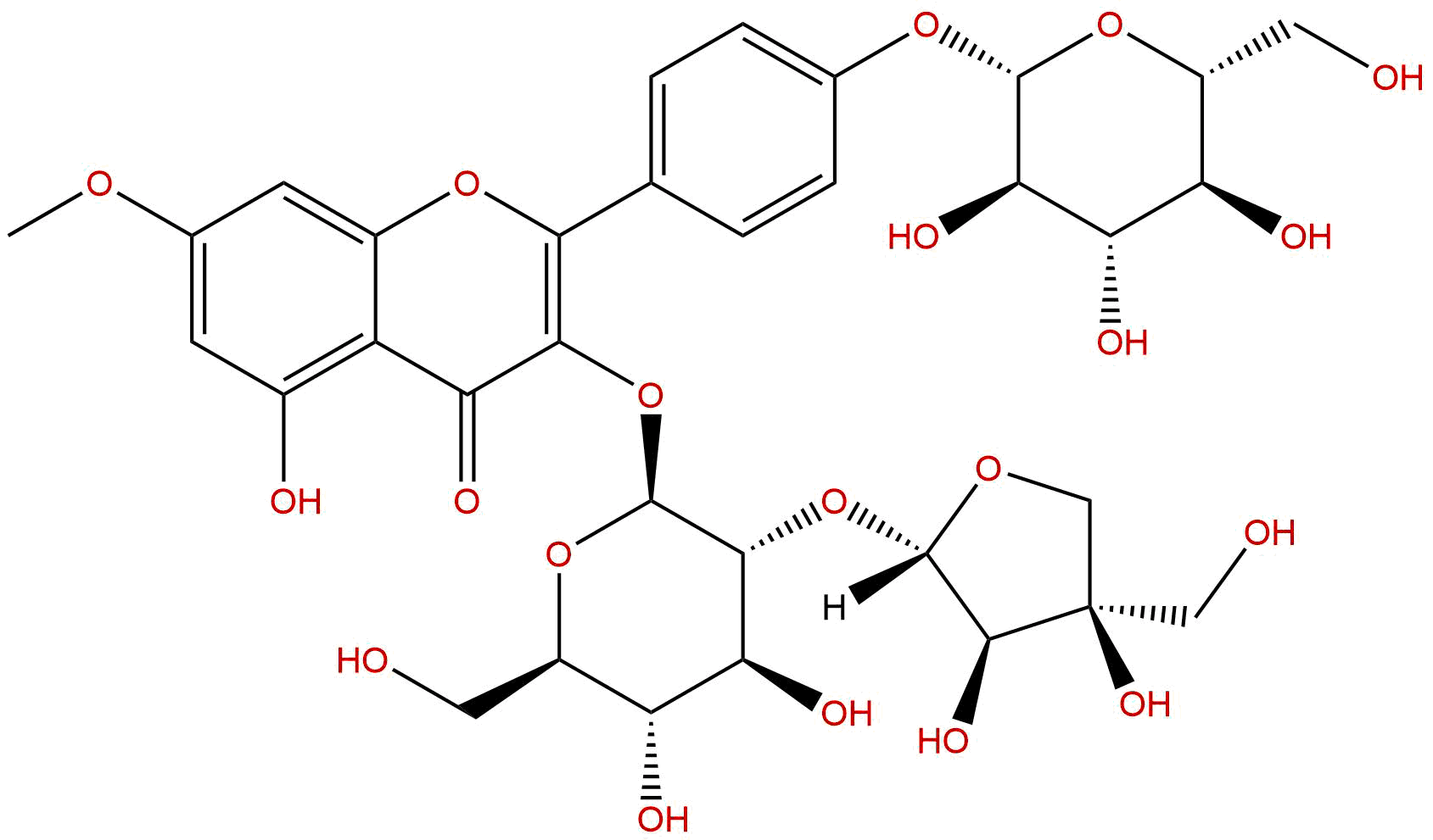 IUPAC Name: 3-[(2S,3R,4S,5S,6R)-3-[(2S,3R,4R)-3,4-dihydroxy-4-(hydroxymethyl)oxolan-2-yl]oxy-4,5-dihydroxy-6-(hydroxymethyl)oxan-2-yl]oxy-5-hydroxy-7-methoxy-2-[4-[(2S,3R,4S,5S,6R)-3,4,5-trihydroxy-6-(hydroxymethyl)oxan-2-yl]oxyphenyl]chromen-4-one