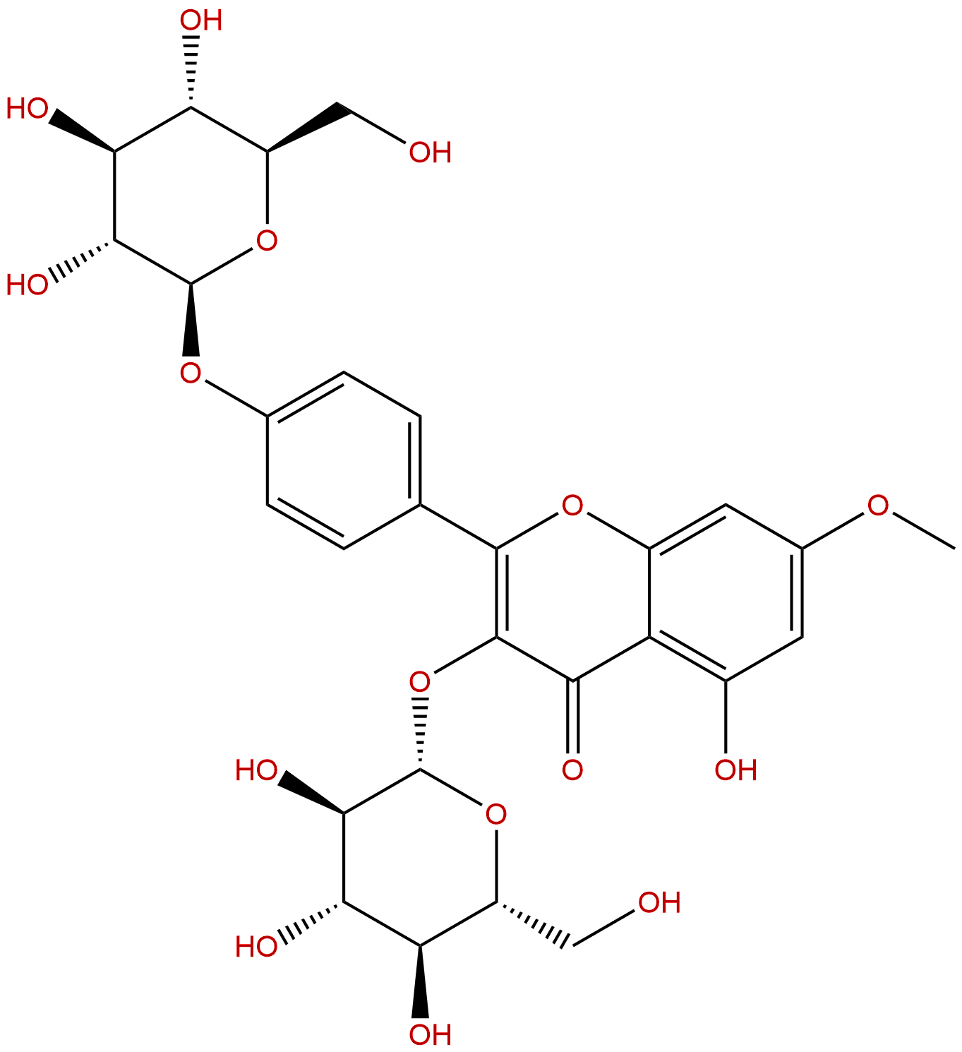IUPAC Name: 5-hydroxy-7-methoxy-3-[(2S,3R,4S,5S,6R)-3,4,5-trihydroxy-6-(hydroxymethyl)oxan-2-yl]oxy-2-[4-[(2S,3R,4S,5S,6R)-3,4,5-trihydroxy-6-(hydroxymethyl)oxan-2-yl]oxyphenyl]chromen-4-one