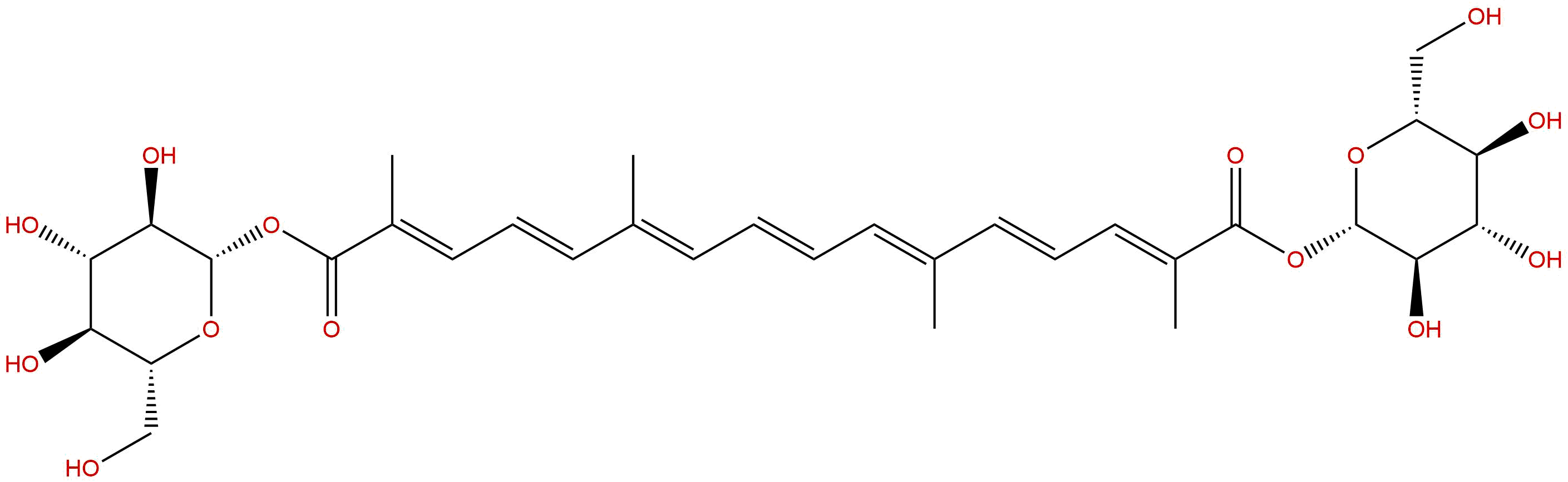 IUPAC Name: bis[(2S,3R,4S,5S,6R)-3,4,5-trihydroxy-6-(hydroxymethyl)oxan-2-yl] (2E,4E,6E,8E,10E,12E,14E)-2,6,11,15-tetramethylhexadeca-2,4,6,8,10,12,14-heptaenedioate