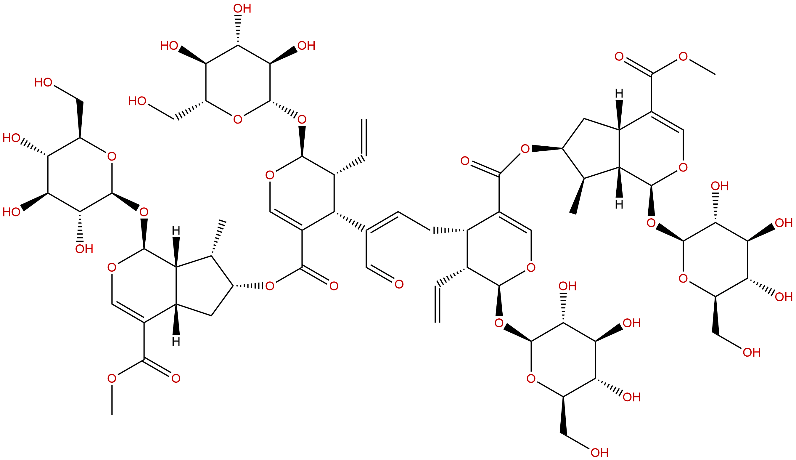 Isomeric SMILES: C[C@H]1[C@H](C[C@H]2[C@@H]1[C@@H](OC=C2C(=O)OC)O[C@H]3[C@@H]([C@H]([C@@H]([C@H](O3)CO)O)O)O)OC(=O)C4=CO[C@H]([C@@H]([C@@H]4C/C=C(C=O)/[C@H]5[C@H]([C@@H](OC=C5C(=O)O[C@H]6C[C@H]7[C@@H]([C@H]6C)[C@@H](OC=C7C(=O)OC)O[C@H]8[C@@H]([C@H]([C@@H]([C@H](O8)CO)O)O)O)O[C@H]9[C@@H]([C@H]([C@@H]([C@H](O9)CO)O)O)O)C=C)C=C)O[C@H]1[C@@H]([C@H]([C@@H]([C@H](O1)CO)O)O)O