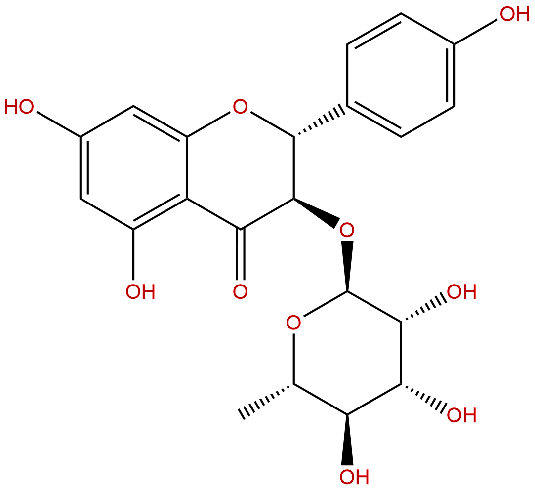 IUPAC Name: (2R,3R)-5,7-dihydroxy-2-(4-hydroxyphenyl)-3-[(2S,3R,4R,5R,6S)-3,4,5-trihydroxy-6-methyloxan-2-yl]oxy-2,3-dihydrochromen-4-one