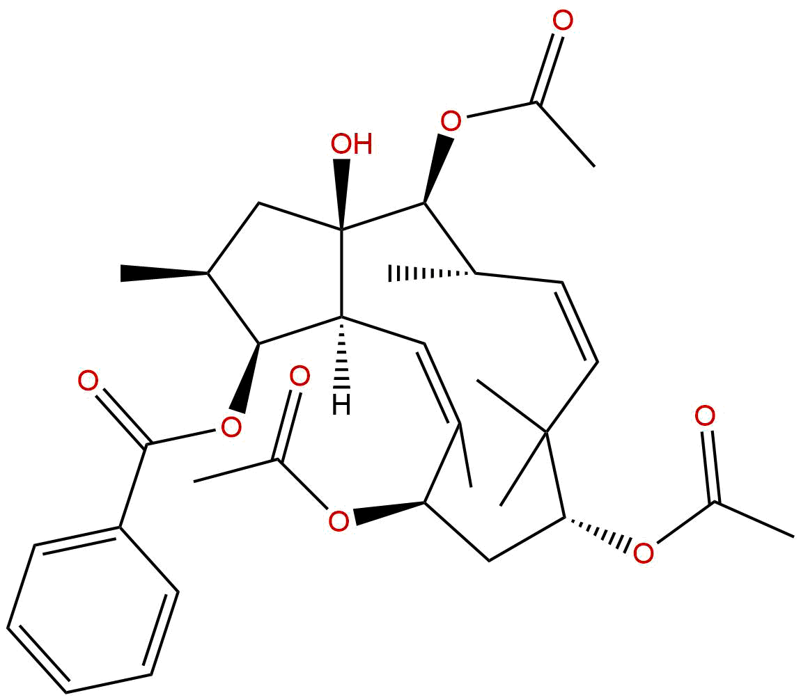 IUPAC Name: [(1S,2S,3aR,4S,5S,6Z,9R,11R,12Z,13aS)-4,9,11-triacetyloxy-3a-hydroxy-2,5,8,8,12-pentamethyl-2,3,4,5,9,10,11,13a-octahydro-1H-cyclopenta[12]annulen-1-yl] benzoate