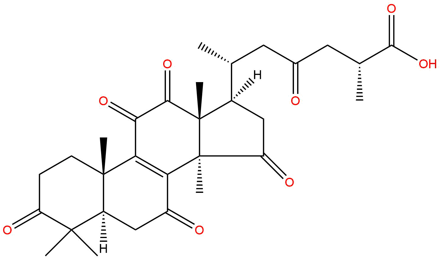 IUPAC Name: (2R,6R)-2-methyl-4-oxo-6-[(10S,13R,14R,17R)-4,4,10,13,14-pentamethyl-3,7,11,12,15-pentaoxo-1,2,5,6,16,17-hexahydrocyclopenta[a]phenanthren-17-yl]heptanoic acid