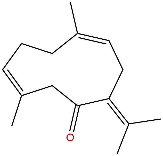 IUPAC Name: (3E,7E)-3,7-dimethyl-10-propan-2-ylidenecyclodeca-3,7-dien-1-one