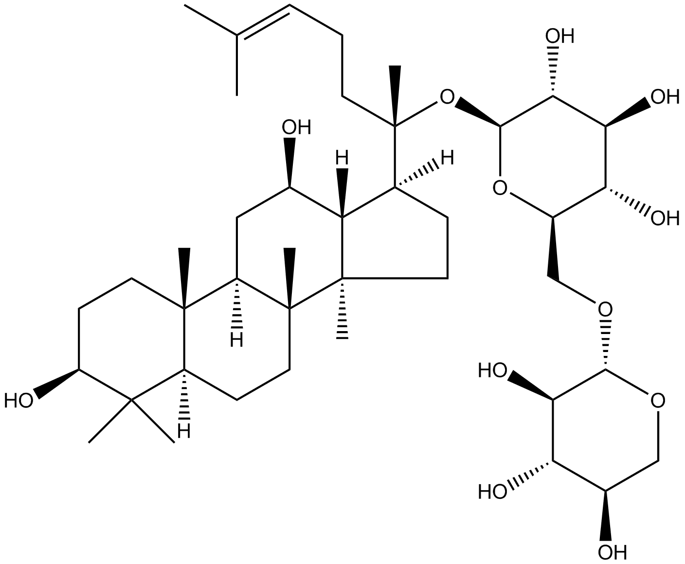 Isomeric SMILES: CC(=CCC[C@@](C)([C@H]1CC[C@@]2([C@@H]1[C@@H](C[C@H]3[C@]2(CC[C@@H]4[C@@]3(CC[C@@H](C4(C)C)O)C)C)O)C)O[C@H]5[C@@H]([C@H]([C@@H]([C@H](O5)CO[C@H]6[C@@H]([C@H]([C@@H](CO6)O)O)O)O)O)O)C