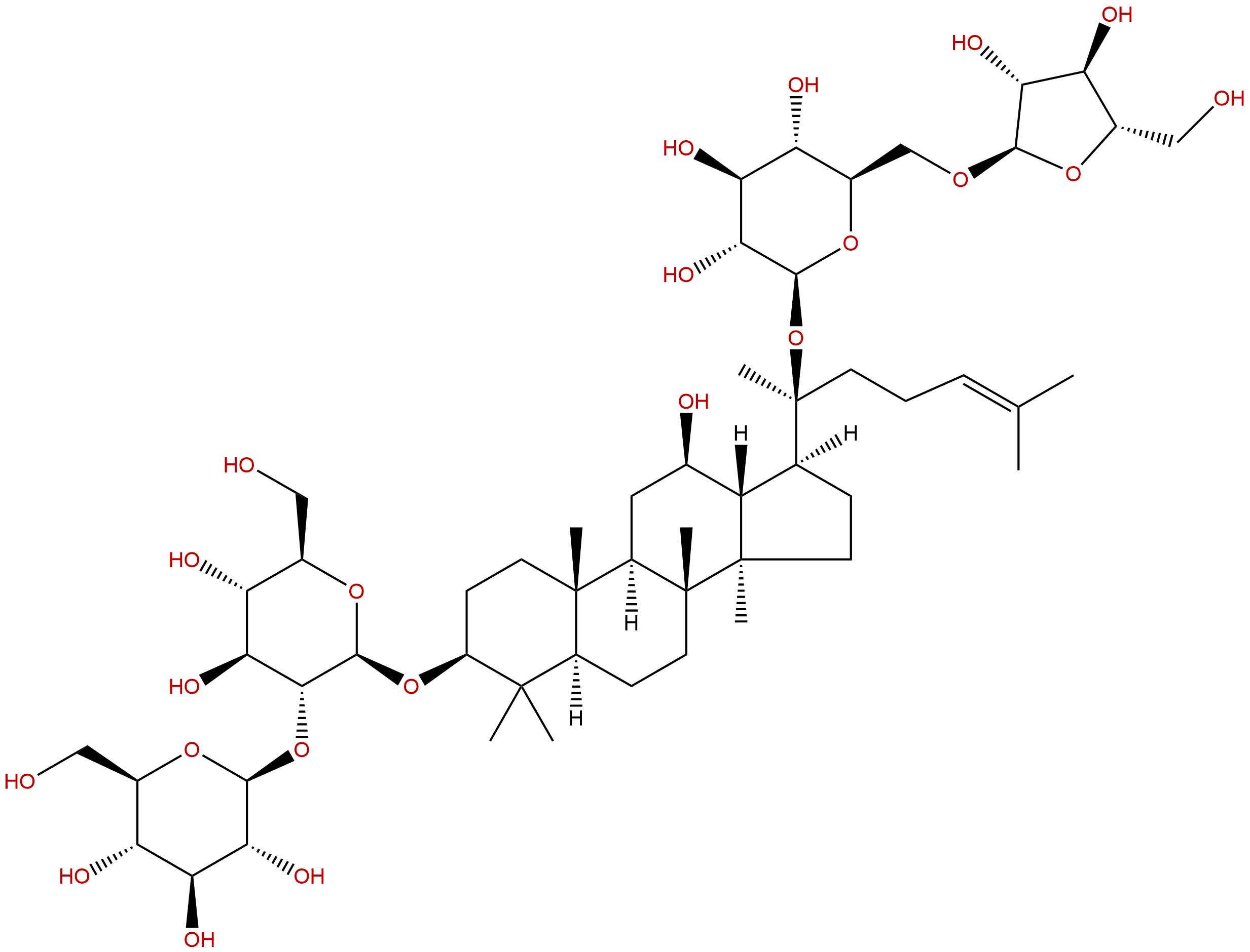 Isomeric SMILES: CC(=CCC[C@@](C)([C@H]1CC[C@@]2([C@@H]1[C@@H](C[C@H]3[C@]2(CC[C@@H]4[C@@]3(CC[C@@H](C4(C)C)O[C@H]5[C@@H]([C@H]([C@@H]([C@H](O5)CO)O)O)O[C@H]6[C@@H]([C@H]([C@@H]([C@H](O6)CO)O)O)O)C)C)O)C)O[C@H]7[C@@H]([C@H]([C@@H]([C@H](O7)CO[C@H]8[C@@H]([C@H]([C@@H](O8)CO)O)O)O)O)O)C