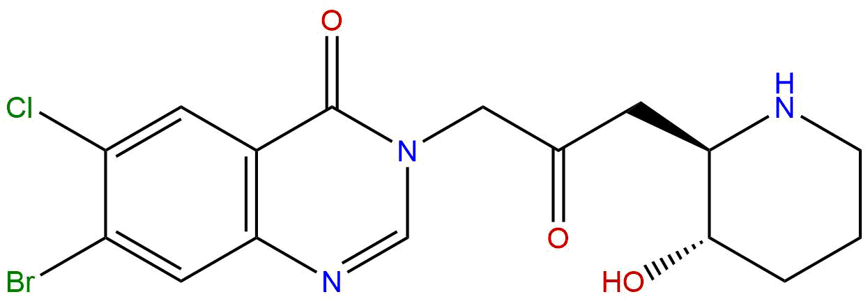 Synonyms: Halofuginone; 55837-20-2; 7-bromo-6-chloro-3-(3-((2S,3R)-3-hydroxypiperidin-2-yl)-2-oxopropyl)quinazolin-4(3H)-one; 7695-84-3; (-)-Halofuginone; Halofuginone, (-)-; 6-Chloro-7-bromofebrifugine; NVY6A324PU; …