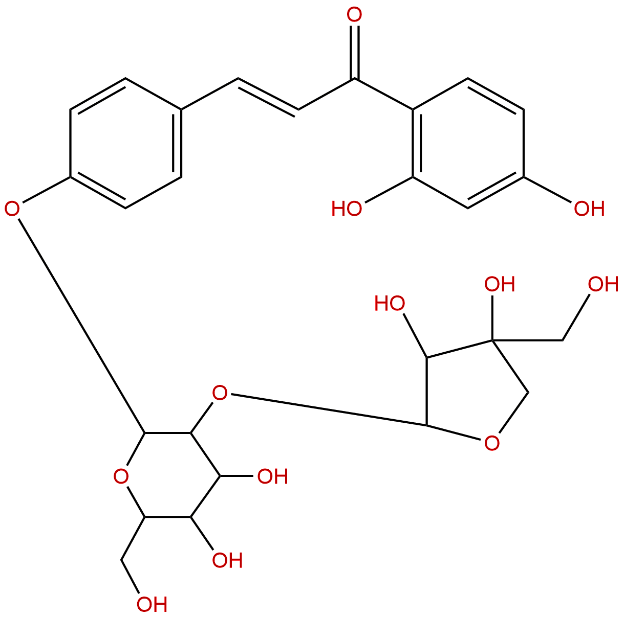 IUPAC Name: (E)-3-[4-[(2S,3R,4S,5S,6R)-3-[(2S,3R,4R)-3,4-dihydroxy-4-(hydroxymethyl)oxolan-2-yl]oxy-4,5-dihydroxy-6-(hydroxymethyl)oxan-2-yl]oxyphenyl]-1-(2,4-dihydroxyphenyl)prop-2-en-1-one