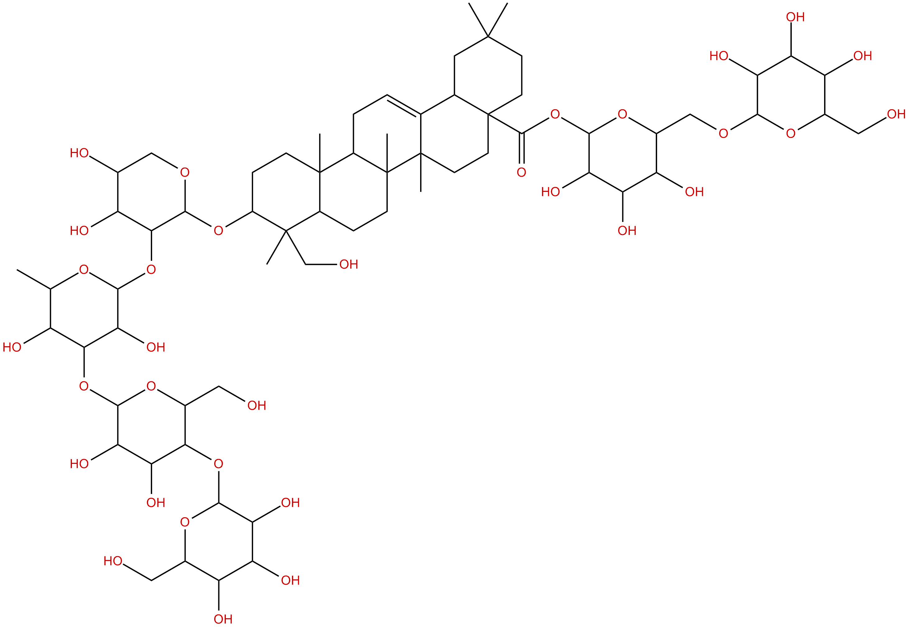Isomeric SMILES: C[C@H]1[C@@H]([C@H]([C@H]([C@@H](O1)O[C@@H]2[C@H]([C@H](CO[C@H]2O[C@H]3CC[C@]4([C@H]([C@]3(C)CO)CC[C@@]5([C@@H]4CC=C6[C@]5(CC[C@@]7([C@H]6CC(CC7)(C)C)C(=O)O[C@H]8[C@@H]([C@H]([C@@H]([C@H](O8)CO[C@H]9[C@@H]([C@H]([C@@H]([C@H](O9)CO)O)O)O)O)O)O)C)C)C)O)O)O)O[C@H]1[C@@H]([C@H]([C@@H]([C@H](O1)CO)O[C@H]1[C@@H]([C@H]([C@@H]([C@H](O1)CO)O)O)O)O)O)O
