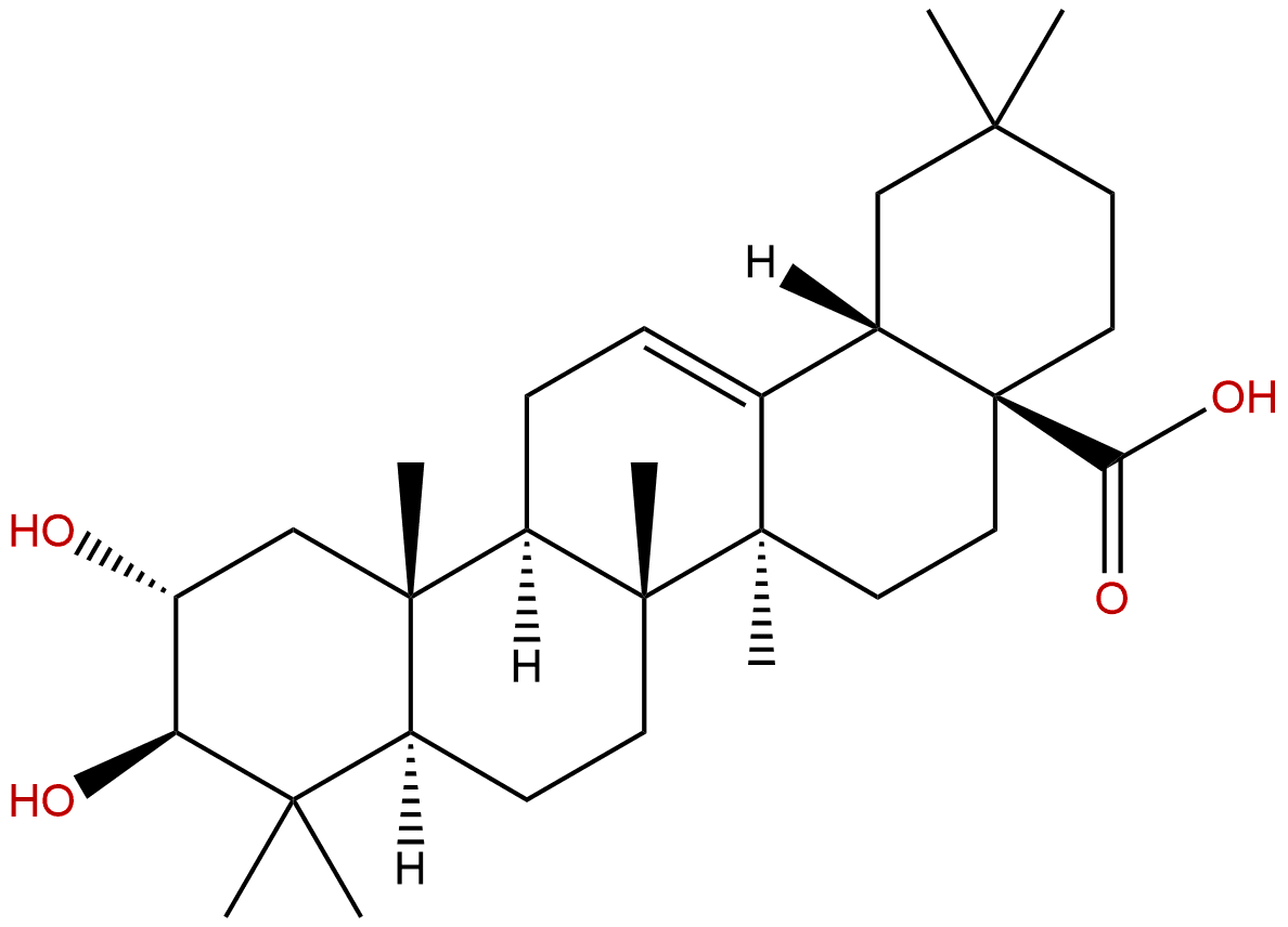 IUPAC Name: (4aS,6aR,6aS,6bR,8aR,10R,11R,12aR,14bS)-10,11-dihydroxy-2,2,6a,6b,9,9,12a-heptamethyl-1,3,4,5,6,6a,7,8,8a,10,11,12,13,14b-tetradecahydropicene-4a-carboxylic acid
