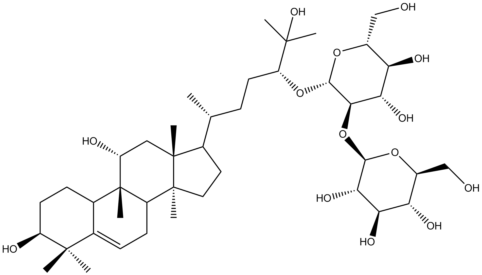 Isomeric SMILES: C[C@H](CC[C@H](C(C)(C)O)O[C@H]1[C@@H]([C@H]([C@@H]([C@H](O1)CO)O)O)O[C@H]2[C@@H]([C@H]([C@@H]([C@H](O2)CO)O)O)O)[C@H]3CC[C@@]4([C@@]3(C[C@H]([C@@]5([C@H]4CC=C6[C@H]5CC[C@@H](C6(C)C)O)C)O)C)C