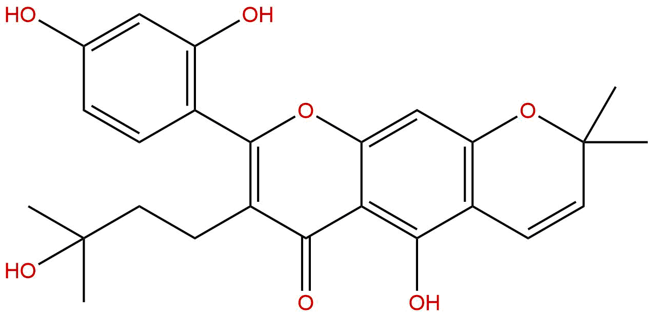 IUPAC Name: 8-(2,4-dihydroxyphenyl)-5-hydroxy-7-(3-hydroxy-3-methylbutyl)-2,2-dimethylpyrano[3,2-g]chromen-6-one