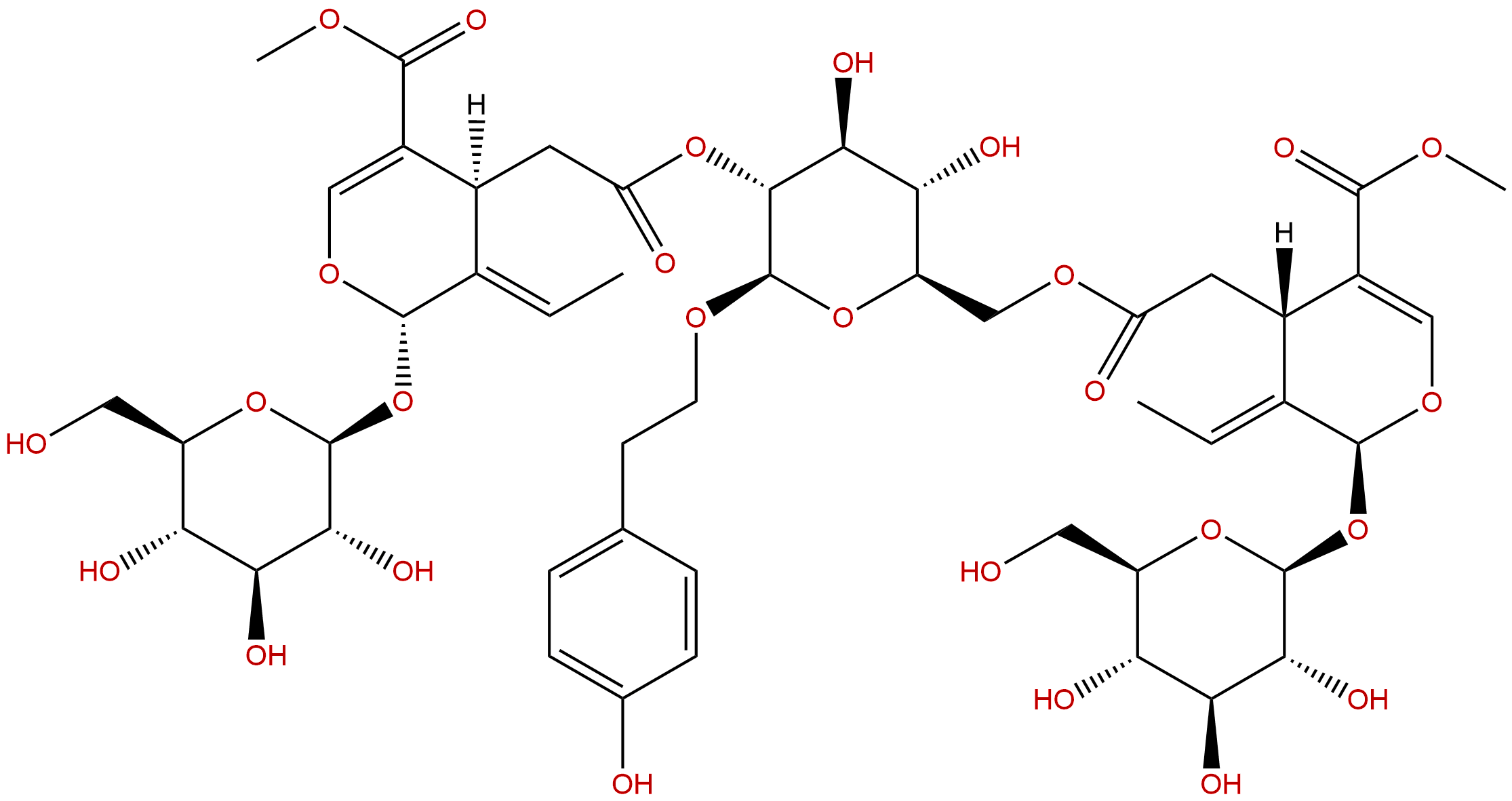 IUPAC Name: methyl (5E,6S)-5-ethylidene-4-[2-[[(2R,3S,4S,5R,6R)-5-[2-[(2S,3E)-3-ethylidene-5-methoxycarbonyl-2-[(2S,3R,4S,5S,6R)-3,4,5-trihydroxy-6-(hydroxymethyl)oxan-2-yl]oxy-4H-pyran-4-yl]acetyl]oxy-3,4-dihydroxy-6-[2-(4-hydroxyphenyl)ethoxy]oxan-2-yl]methoxy]-2-oxoethyl]-6-[(2S,3R,4S,5S,6R)-3,4,5-trihydroxy-6-(hydroxymethyl)oxan-2-yl]oxy-4H-pyran-3-carboxylate