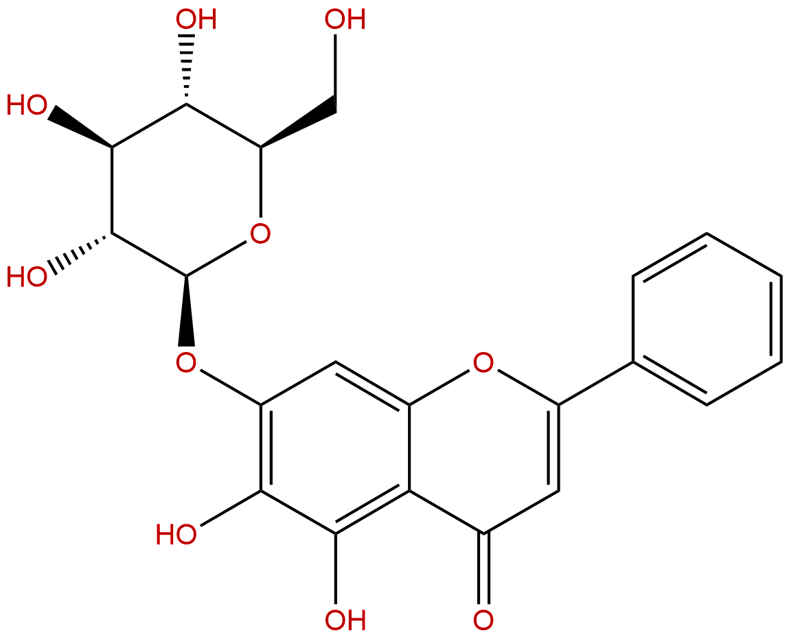 IUPAC Name: 5,6-dihydroxy-2-phenyl-7-[(2S,3R,4S,5S,6R)-3,4,5-trihydroxy-6-(hydroxymethyl)oxan-2-yl]oxychromen-4-one