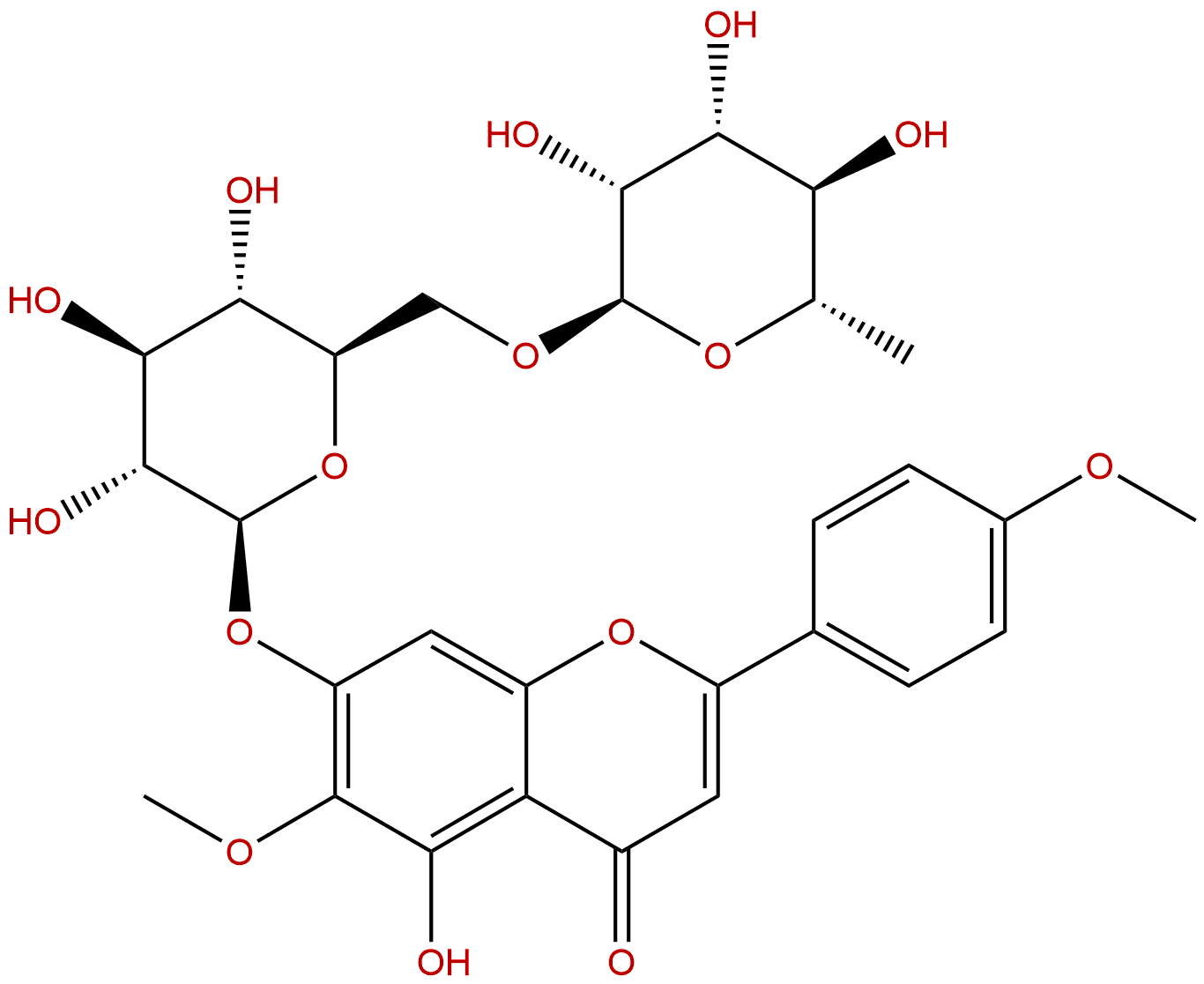 IUPAC Name: 5-hydroxy-6-methoxy-2-(4-methoxyphenyl)-7-[(2S,3R,4S,5S,6R)-3,4,5-trihydroxy-6-[[(2R,3R,4R,5R,6S)-3,4,5-trihydroxy-6-methyloxan-2-yl]oxymethyl]oxan-2-yl]oxychromen-4-one