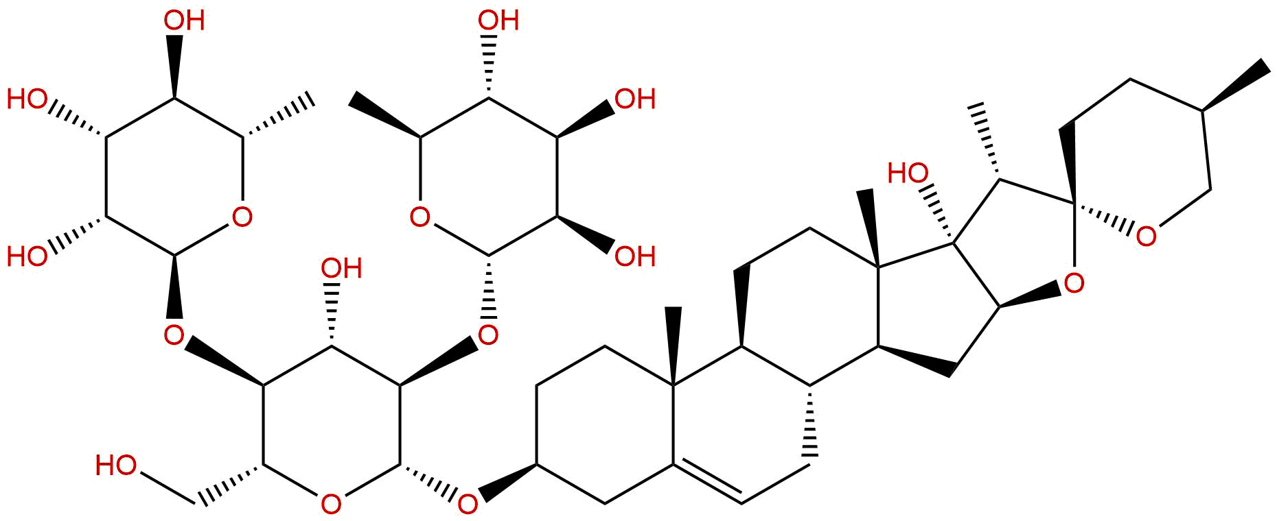 Isomeric SMILES: C[C@@H]1CC[C@@]2([C@H]([C@]3([C@@H](O2)C[C@@H]4[C@@]3(CC[C@H]5[C@H]4CC=C6[C@@]5(CC[C@@H](C6)O[C@H]7[C@@H]([C@H]([C@@H]([C@H](O7)CO)O[C@H]8[C@@H]([C@@H]([C@H]([C@@H](O8)C)O)O)O)O)O[C@H]9[C@@H]([C@@H]([C@H]([C@@H](O9)C)O)O)O)C)C)O)C)OC1