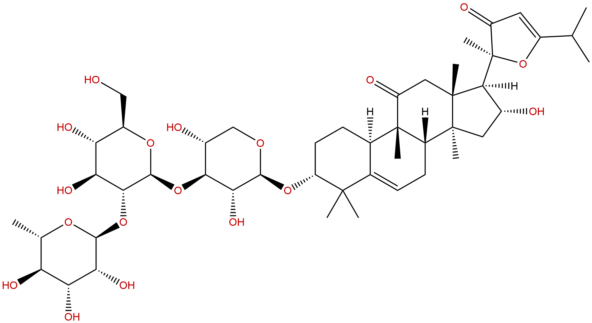 IUPAC Name: (2S)-2-[(3R,8S,9R,10R,13R,14S,16R,17R)-3-[(2S,3R,4S,5R)-4-[(2S,3R,4S,5S,6R)-4,5-dihydroxy-6-(hydroxymethyl)-3-[(2S,3R,4R,5R,6S)-3,4,5-trihydroxy-6-methyloxan-2-yl]oxyoxan-2-yl]oxy-3,5-dihydroxyoxan-2-yl]oxy-16-hydroxy-4,4,9,13,14-pentamethyl-11-oxo-1,2,3,7,8,10,12,15,16,17-decahydrocyclopenta[a]phenanthren-17-yl]-2-methyl-5-propan-2-ylfuran-3-one