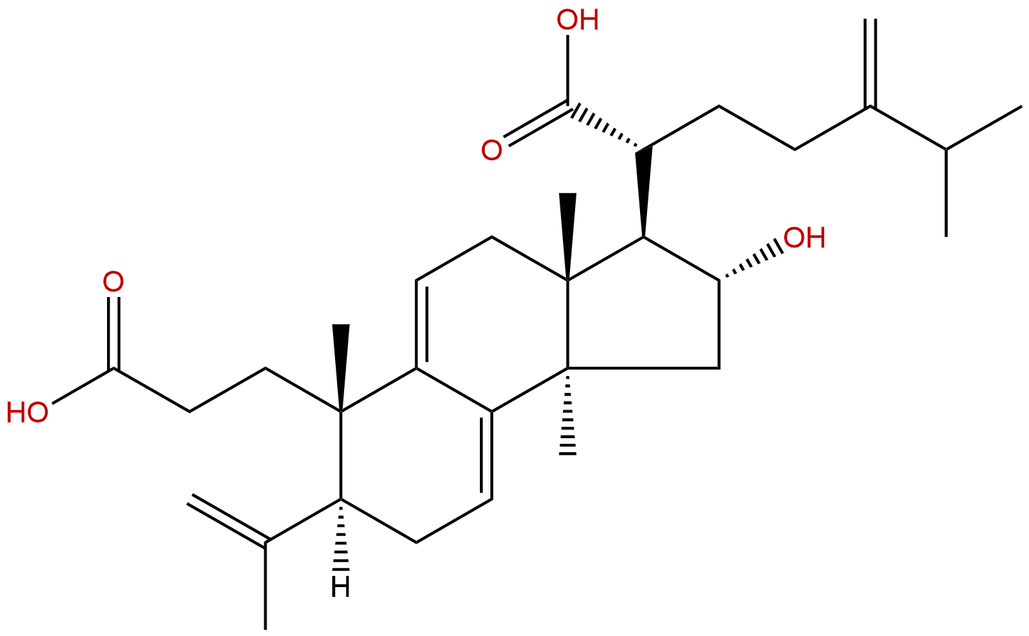 IUPAC Name: (2R)-2-[(2R,3R,3aR,6S,7S,9bR)-6-(2-carboxyethyl)-2-hydroxy-3a,6,9b-trimethyl-7-prop-1-en-2-yl-1,2,3,4,7,8-hexahydrocyclopenta[a]naphthalen-3-yl]-6-methyl-5-methylideneheptanoic acid