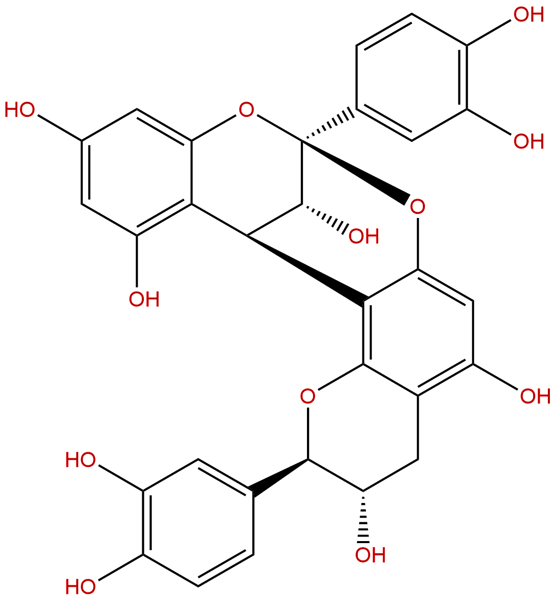 InChI: InChI=1S/C30H24O12/c31-13-7-20(37)24-22(8-13)41-30(12-2-4-16(33)19(36)6-12)29(39)26(24)25-23(42-30)10-17(34)14-9-21(38)27(40-28(14)25)11-1-3-15(32)18(35)5-11/h1-8,10,21,26-27,29,31-39H,9H2/t21-,26+,27+,29+,30-/m0/s1