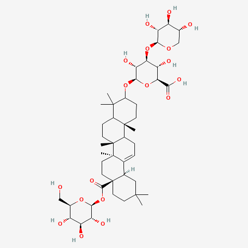 IUPAC Name: (2S,3S,4S,5R,6R)-6-[[(6aR,6bS,8aS,12aR,14bR)-4,4,6a,6b,11,11,14b-heptamethyl-8a-[(2S,3R,4S,5S,6R)-3,4,5-trihydroxy-6-(hydroxymethyl)oxan-2-yl]oxycarbonyl-1,2,3,4a,5,6,7,8,9,10,12,12a,14,14a-tetradecahydropicen-3-yl]oxy]-3,5-dihydroxy-4-[(2S,3R,4S,5R)-3,4,5-trihydroxyoxan-2-yl]oxyoxane-2-carboxylic acid