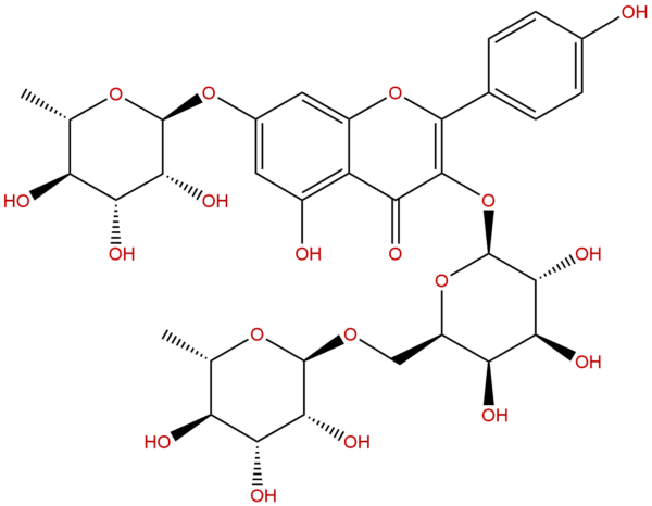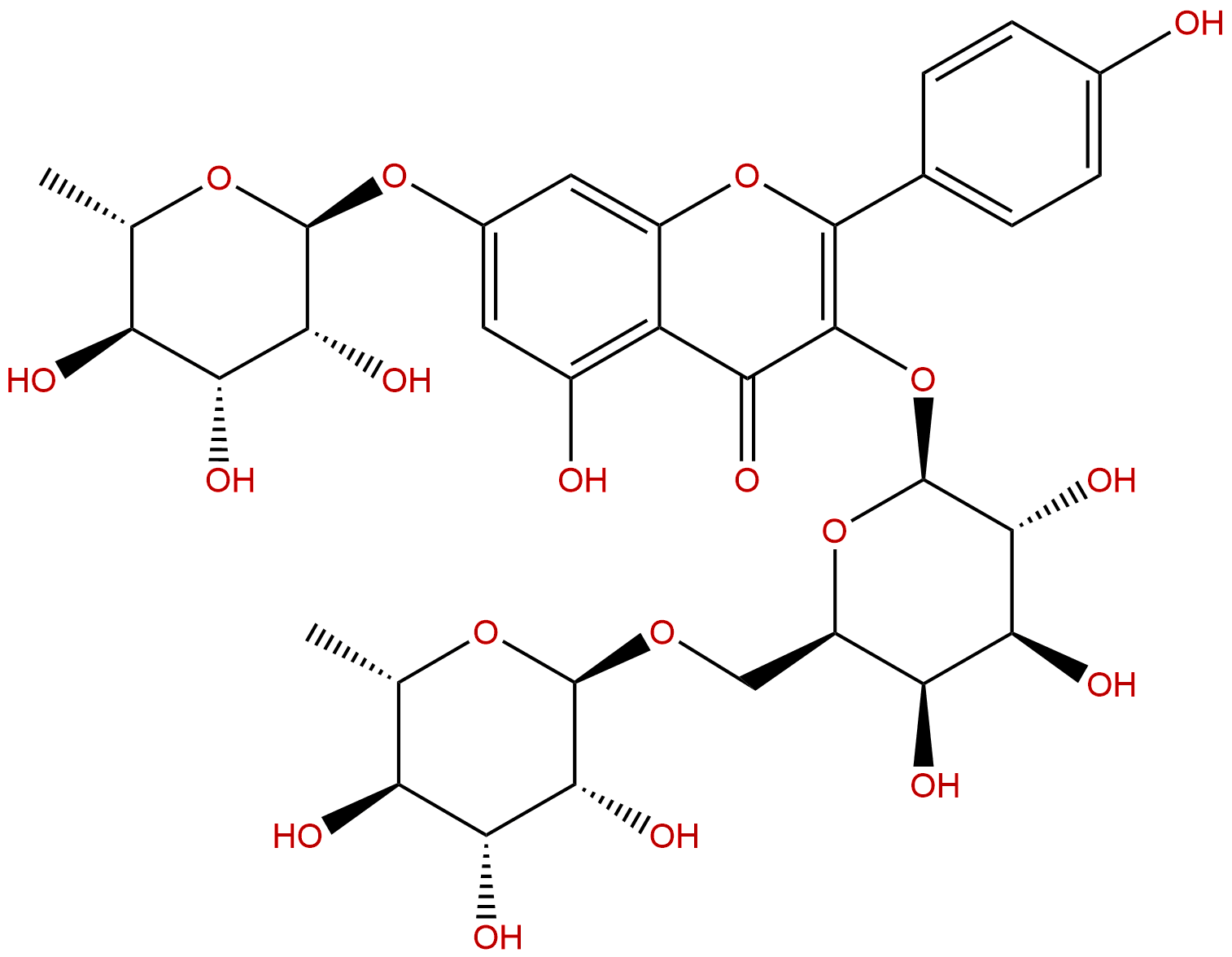 IUPAC Name: 5-hydroxy-2-(4-hydroxyphenyl)-7-[(2S,3R,4R,5R,6S)-3,4,5-trihydroxy-6-methyloxan-2-yl]oxy-3-[(2S,3R,4S,5R,6R)-3,4,5-trihydroxy-6-[[(2S,3R,4R,5R,6S)-3,4,5-trihydroxy-6-methyloxan-2-yl]oxymethyl]oxan-2-yl]oxychromen-4-one