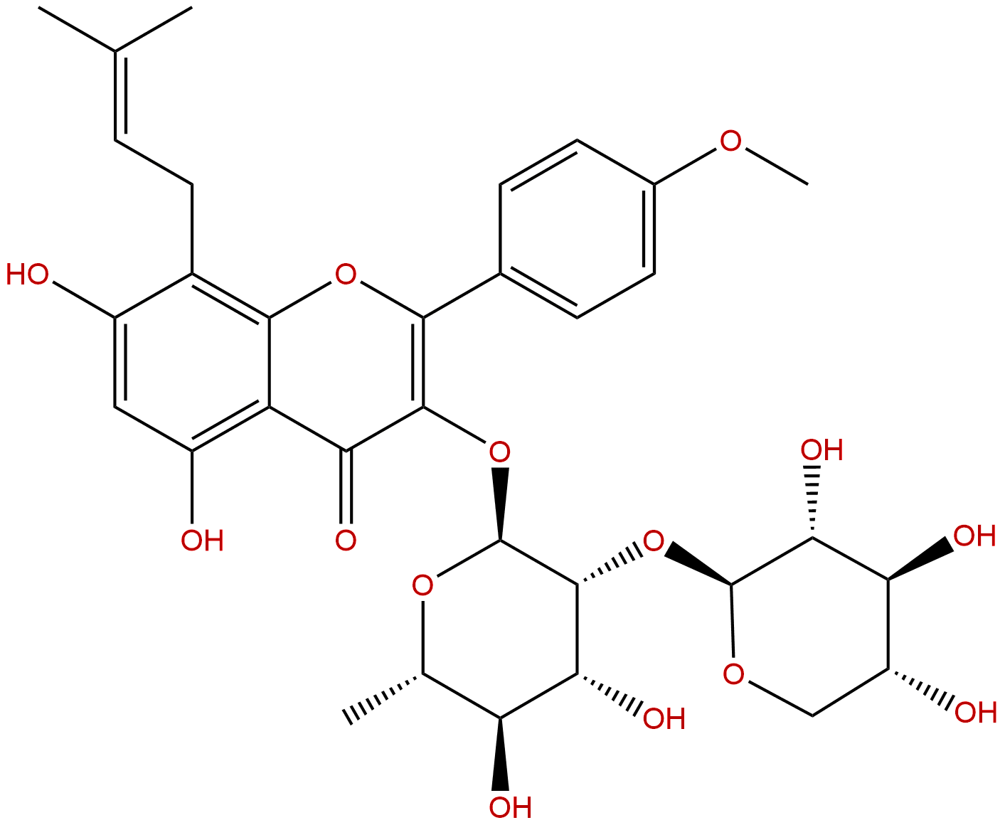 IUPAC Name: 3-[(2S,3R,4R,5R,6S)-4,5-dihydroxy-6-methyl-3-[(2S,3R,4S,5R)-3,4,5-trihydroxyoxan-2-yl]oxyoxan-2-yl]oxy-5,7-dihydroxy-2-(4-methoxyphenyl)-8-(3-methylbut-2-enyl)chromen-4-one